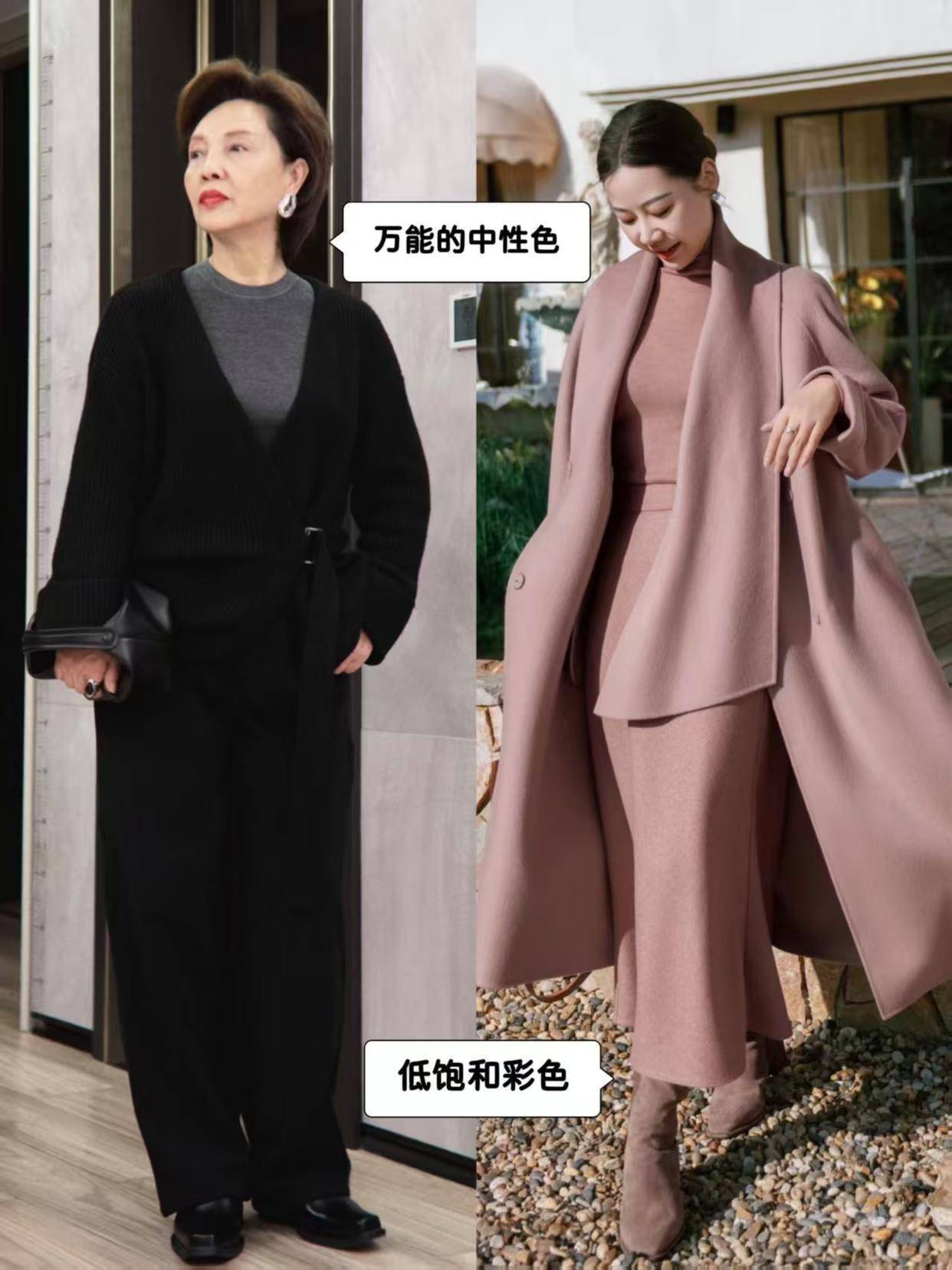 五六十岁的中年女性建议选择中性色,简单的理解就是最为基础的黑白灰色彩,或者你可以用红色的毛衣搭配黑色的衣服外套,这样看起来会更经典。